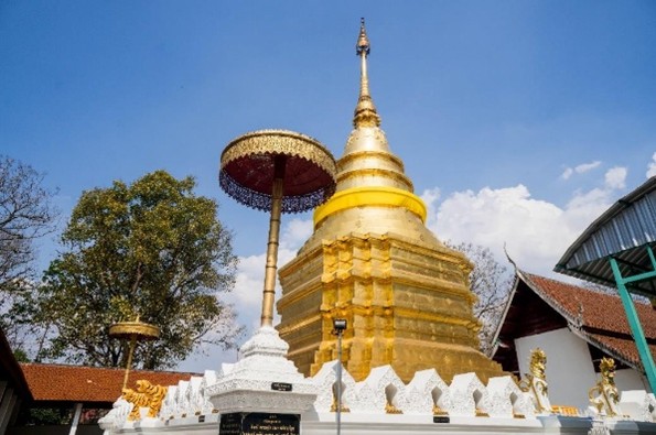 พระธาตุจอมทอง องค์พระธาตุสีทองเหลืองอร่ามตั้งเด่นตระหง่านอยู่บนดอยจอมทองคือ “พระธาตุจอมทอง” ตั้งอยู่ภายในวัดพระธาตุจอมทอง เป็นปูชนียสถานโบราณคู่เมืองพะเยา วัดพระธาตุจอมทอง เป็นวัดสาคัญที่ประดิษฐานพระธาตุจอมทอง อันเป็นที่เคารพสักการะของประชาชนชาวเมืองพะเยามาตั้งแต่โบราณ พระธาตุจอมทองเป็นเจดีย์ทรงล้านนาสูง 30 เมตร ตั้งอยู่บนฐานสี่เหลี่ยมจัตุรัส กว้าง 9 เมตร ซ้อนกันสามชั้น รองรับองค์ระฆัง ส่วนยอดสุดเป็นฉัตรสีทอง ฐานโดยรอบข้างล่างบุด้วยแผ่นโลหะ ดุนลายเป็นรูป 12 นักษัตร และลายไทยอันงดงาม พระธาตุองค์นี้ไม่มีหลักฐานปรากฏชัดเจนว่าสร้างตั้งแต่สมัยใดเพียงแต่มีประวัติเกี่ยวกับพระธาตุจอมกิตติที่เชียงแสน จังหวัดเชียงราย