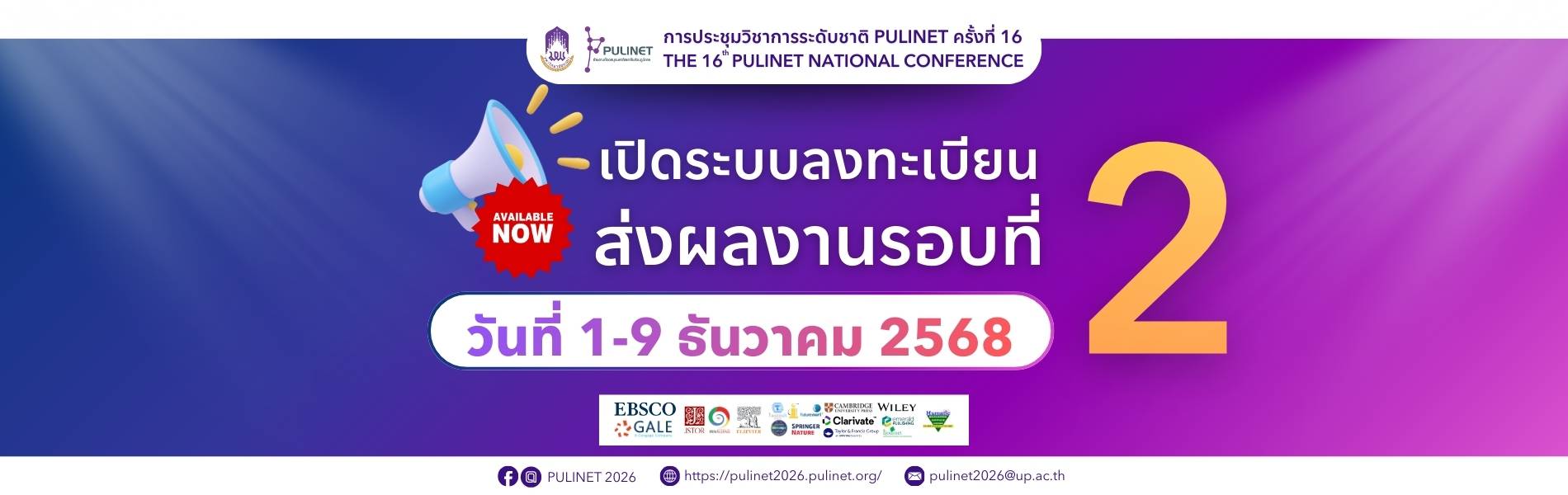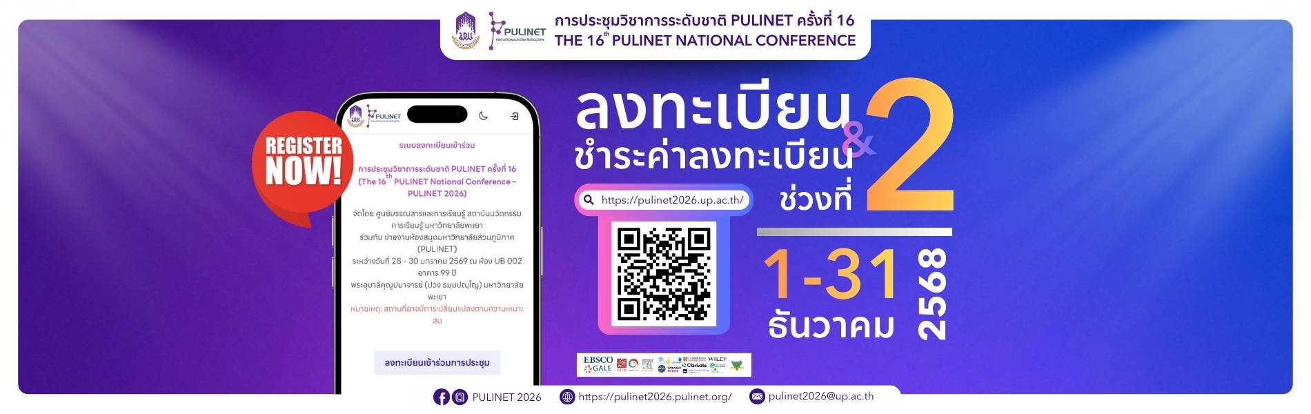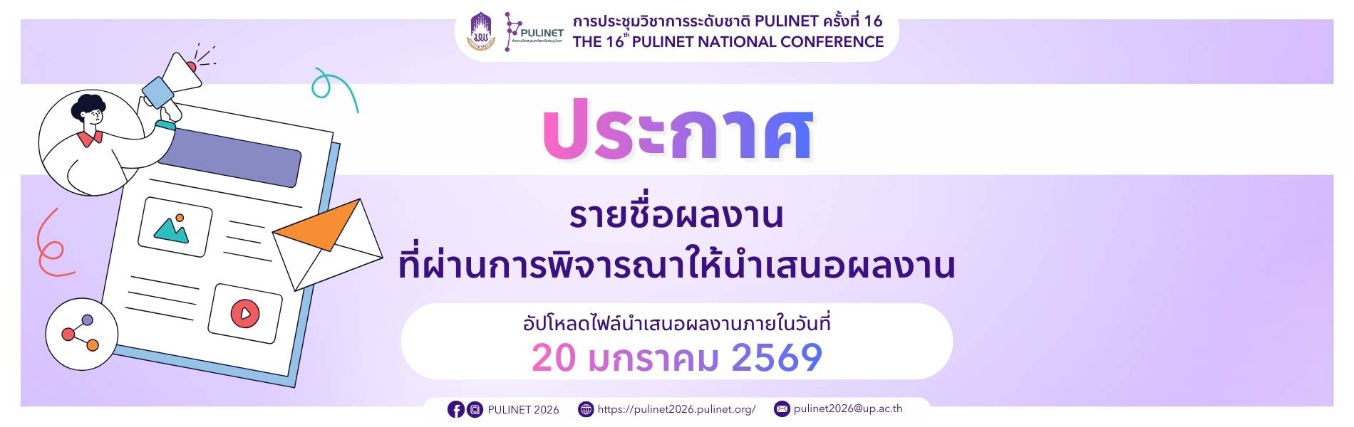 ลงทะเบียนเข้าร่วม การประชุมวิชาการระดับชาติ PULINET ครั้งที่ 16 กำหนดจัดขึ้นในระหว่าง วันที่ 28 - 30 มกราคม 2569