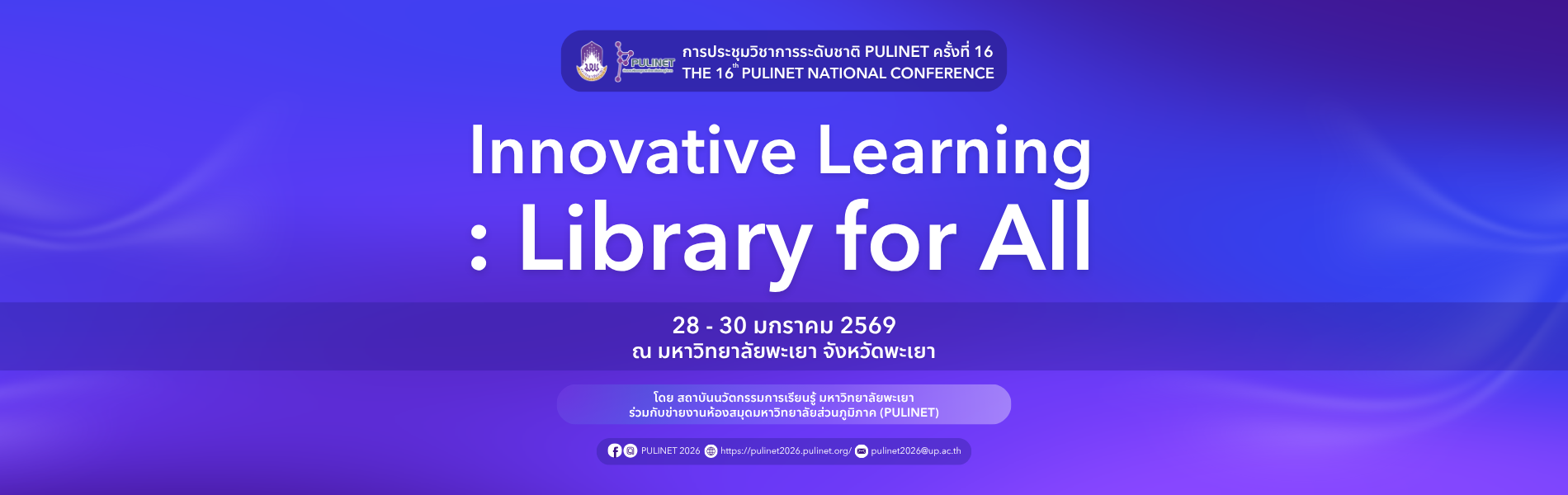 มหาวิทยาลัยพะเยา ได้รับเกียรติให้เป็นเจ้าภาพหลักในการจัดการประชุมวิชาการระดับชาติ PULINET ครั้งที่ 16 (THE 16TH PULINET NATIONAL CONFERENCE)