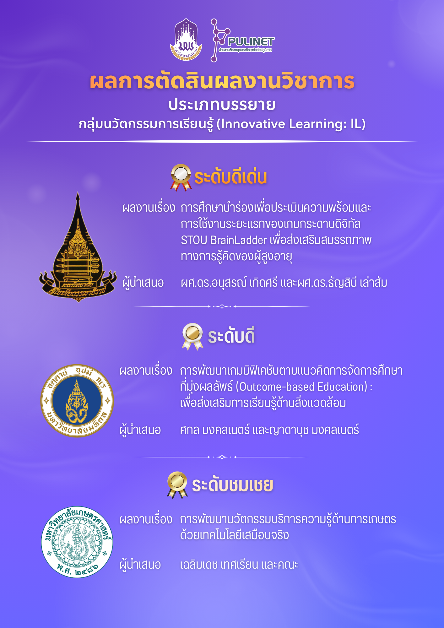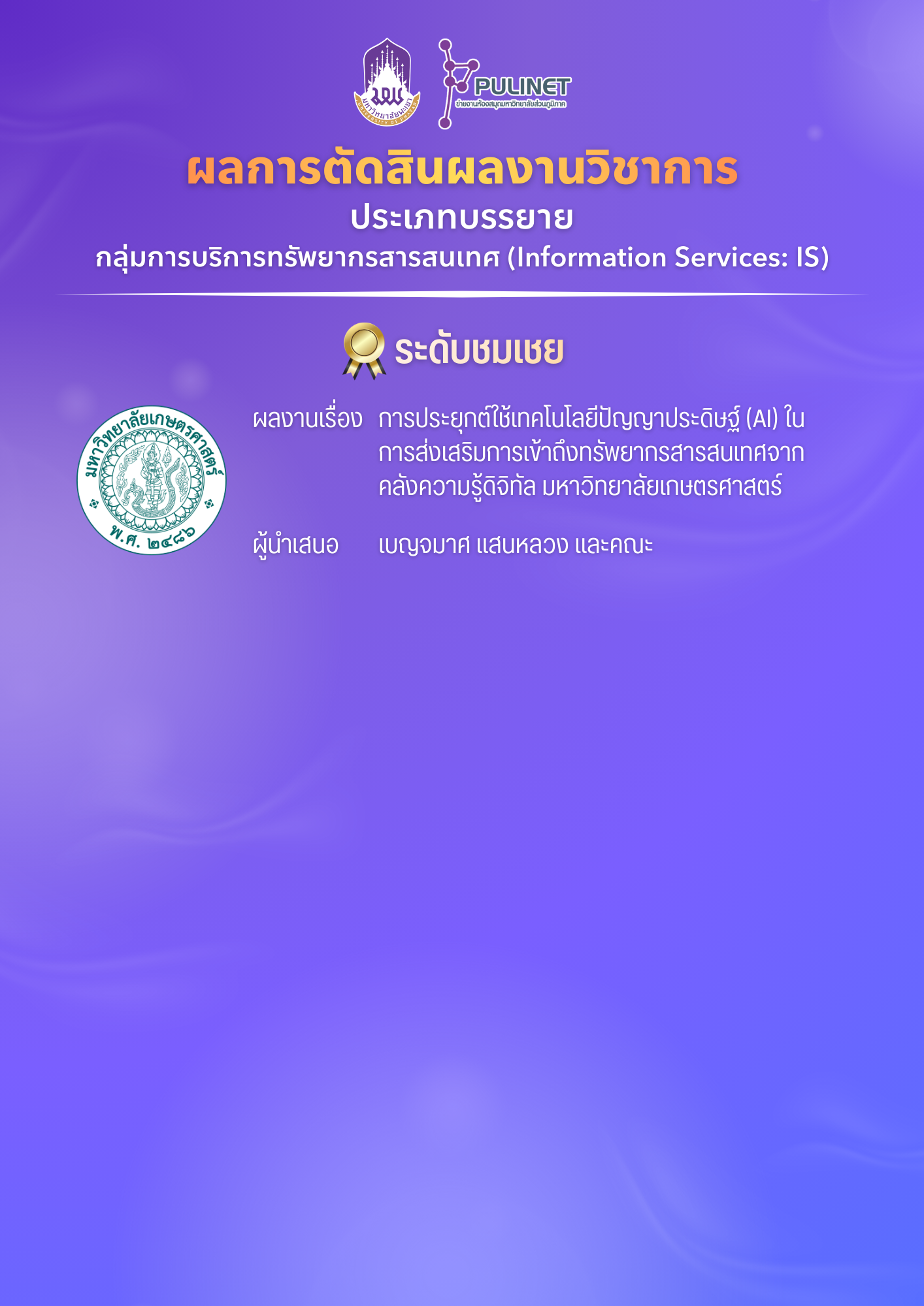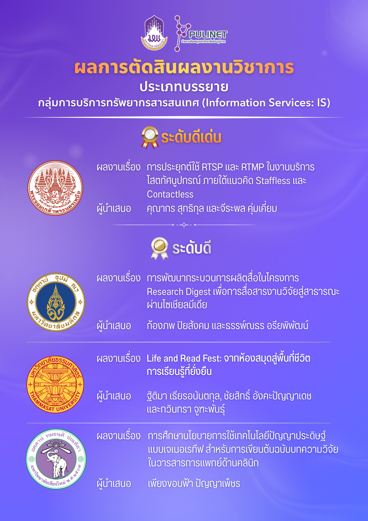 ผลการตัดสินการนำเสนอผลงาน