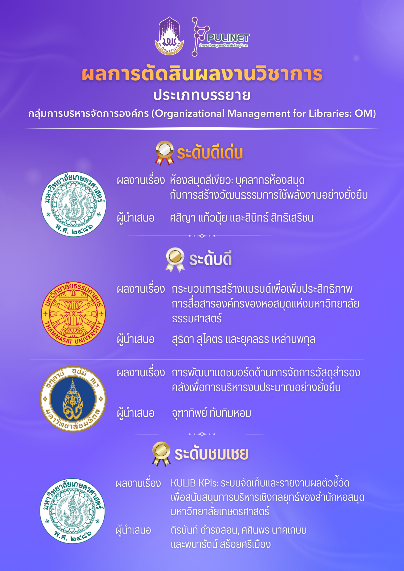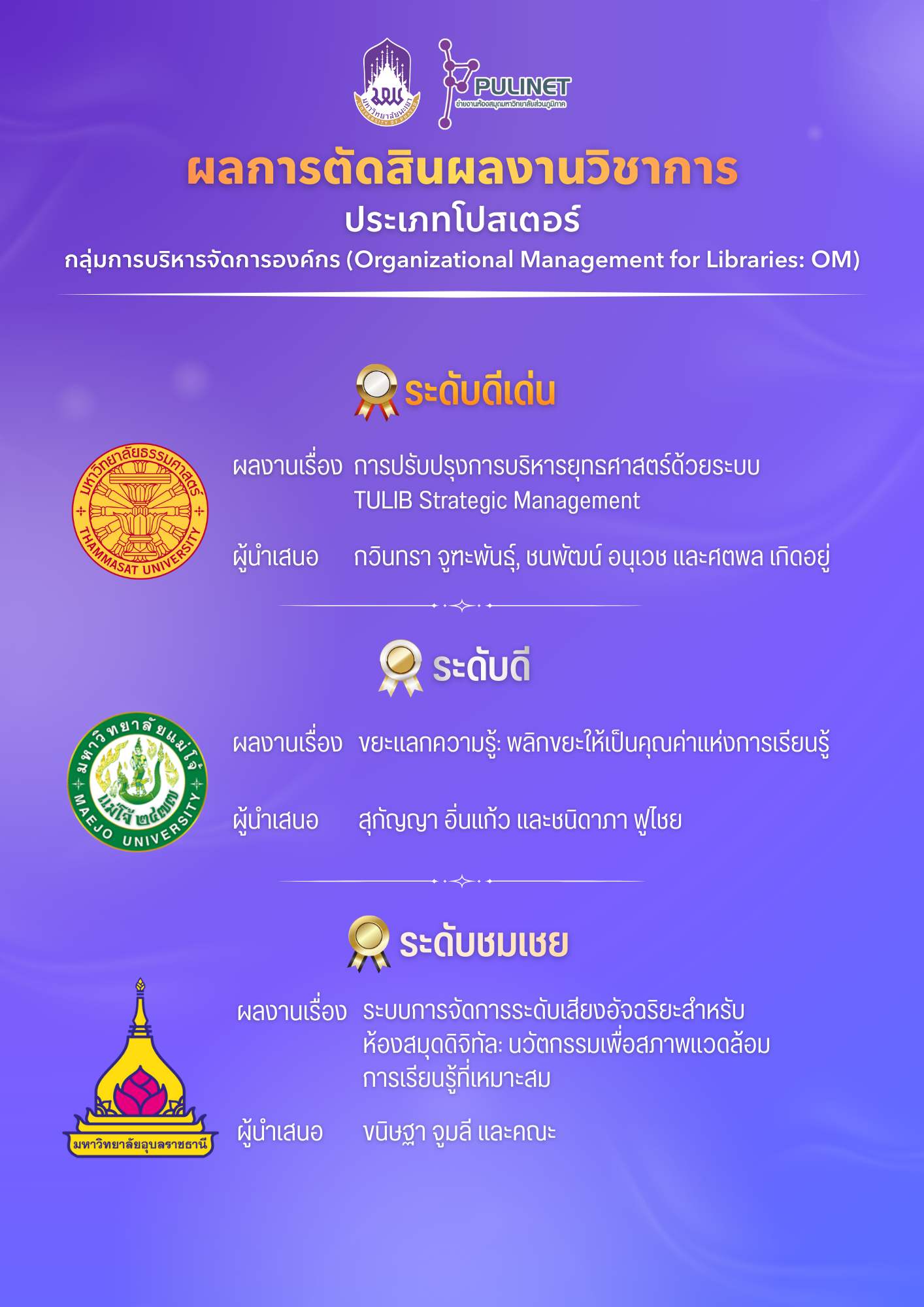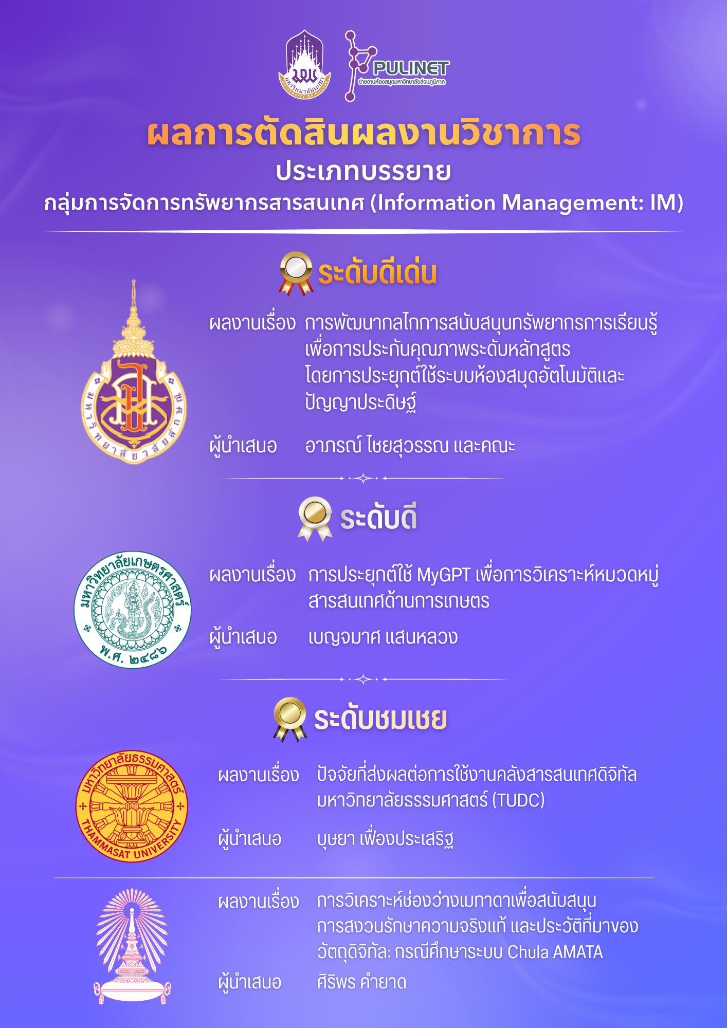 ผลการตัดสินการนำเสนอผลงาน